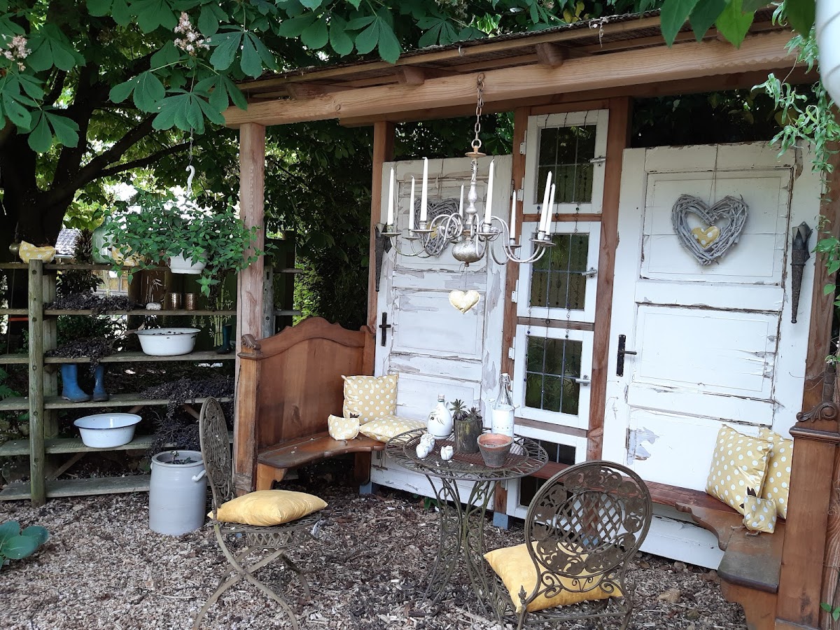 Viele Tische und Stühle überall im Garten. Jede Menge Fässer und andere Gegenstände die bearbeitet wurden um mit Kerzen, Lampen oder andere Sachen zum leuchten gebracht werden können. War für mich eine bessere Verkaufsaustellung mit Eintrittspreis. Der Garten war gut gepflegt mit Verbesserungsmöglichkeiten. Ich war enttäuscht hatte mehr Garten erwartet.