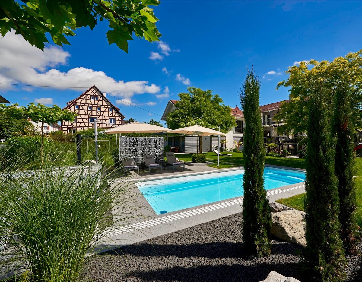 Eine Transformation von einem "normalen" Garten zur geschmackvoll anmutenden Gartenlandschaft mit Pool für die heißen Tage. So könnte man zusammenfassend die Arbeiten des Teams rund um Andreas Liewig beschreiben. Eine Neugestaltung des Gartens verlangt nicht nur vom Auftraggeber so Einiges ab, auch die Planung verschlingt viel Zeit und Energie. Pläne müssen manchmal angepasst oder durch neue Ideen völlig auf den Kopf gestellt werden. Genau das hat die Firma Wohnraum Garten erfüllt und umgesetzt. Seit der Fertigstellung ist jeder Tag zu Hause wie ein Urlaubstag. Unser herzlicher Dank gilt dem ganzen Team, das vom ersten Tag der Beratung bis zum letzten Spatenstich immer sehr kompetent und zuverlässig war. Wir geben eine absolute Empfehlung.