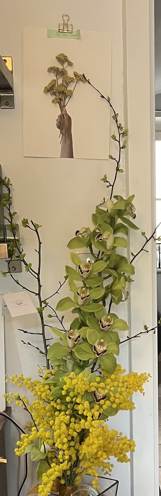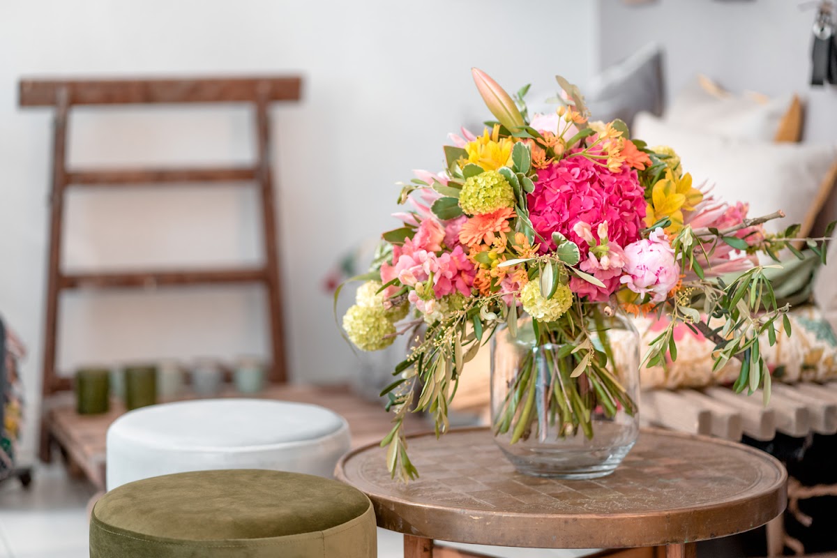 Seit fast zwei Jahren bekommen wir jeden Dienstag frische Blumen. Jedes Mal bin ich von den abwechslungsreichen Kreationen begeistert. Mal sind sie raumgreifend, dann wieder zart und filigran – aber immer präsent, weil sie mit so viel Feingefühl gestaltet sind. Auch zu Ausstellungen und Vernissagen erhalte ich Blumen, die zum Titel der Ausstellung passen. Entweder abgestimmt auf unsere Vasen oder es werden passende Vasen mitgeliefert. Die Blumen werden oft bewundert, und ich freue mich, dass sie meine Galerieräume immer wieder ein wenig verwandeln.