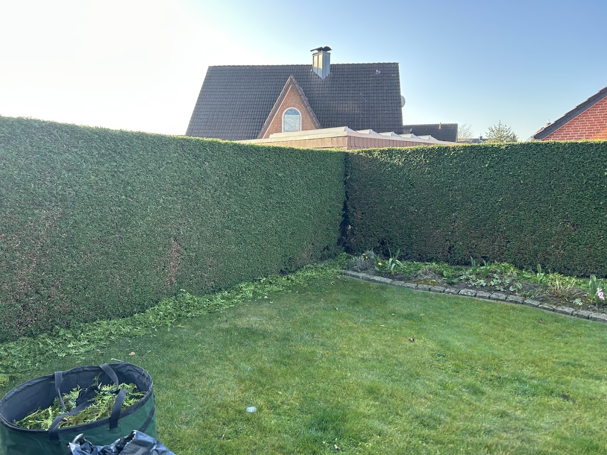 Unsere Hecke wurde gestutzt, Herr Horschel hat dies schnell erledigt. Gerne wieder