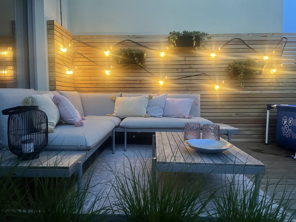 Holzterrasse mit Sicht - und Windschutz. Tolle persönliche und individuelle Beratung, die uns und unseren Prachtwerker gleichermaßen inspirierte. Durch die 3D-Visualisierung konnte man den Plan bzw die Idee anschauen und quasi anfassen. Alle Gestaltungswünsche wurden rasch verwirklicht und von der Planung bis zur Ausführung ging es immer um Transparenz und Genauigkeit. Wir sind mehr als zufrieden und freuen uns auf viele entspannende Stunden auf der prächtigen Terrasse. 5 Sterne!