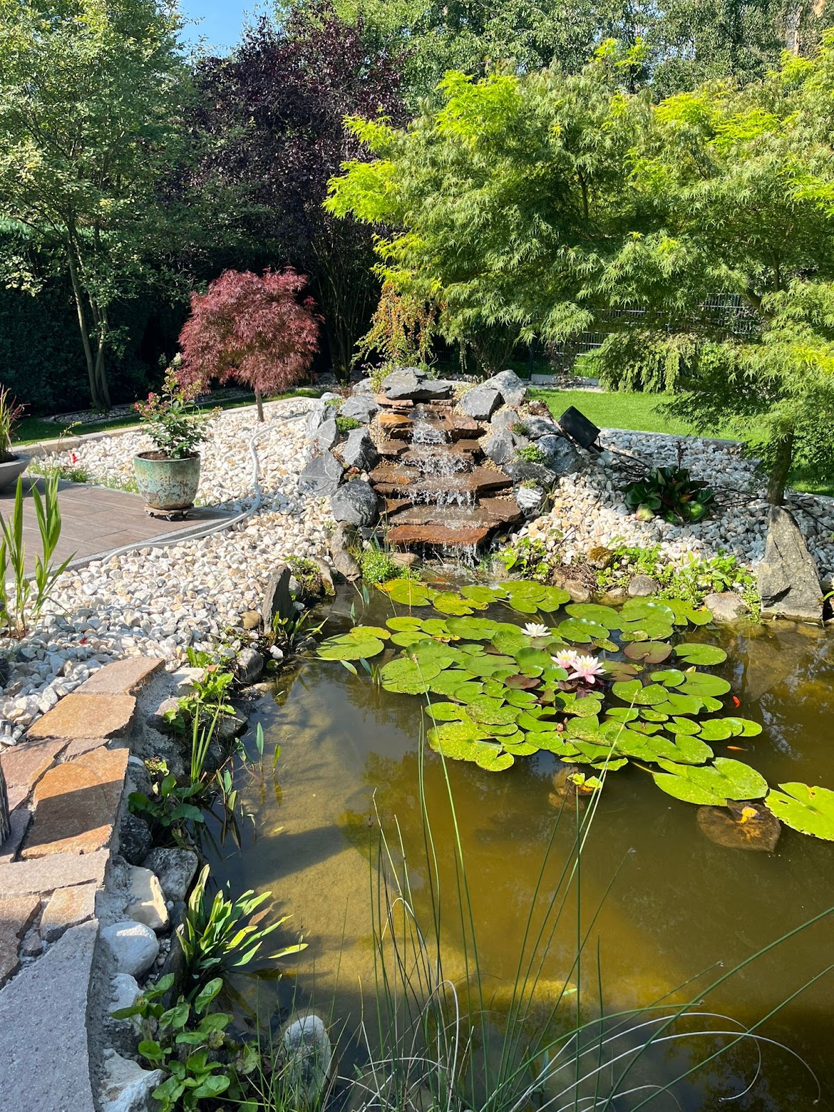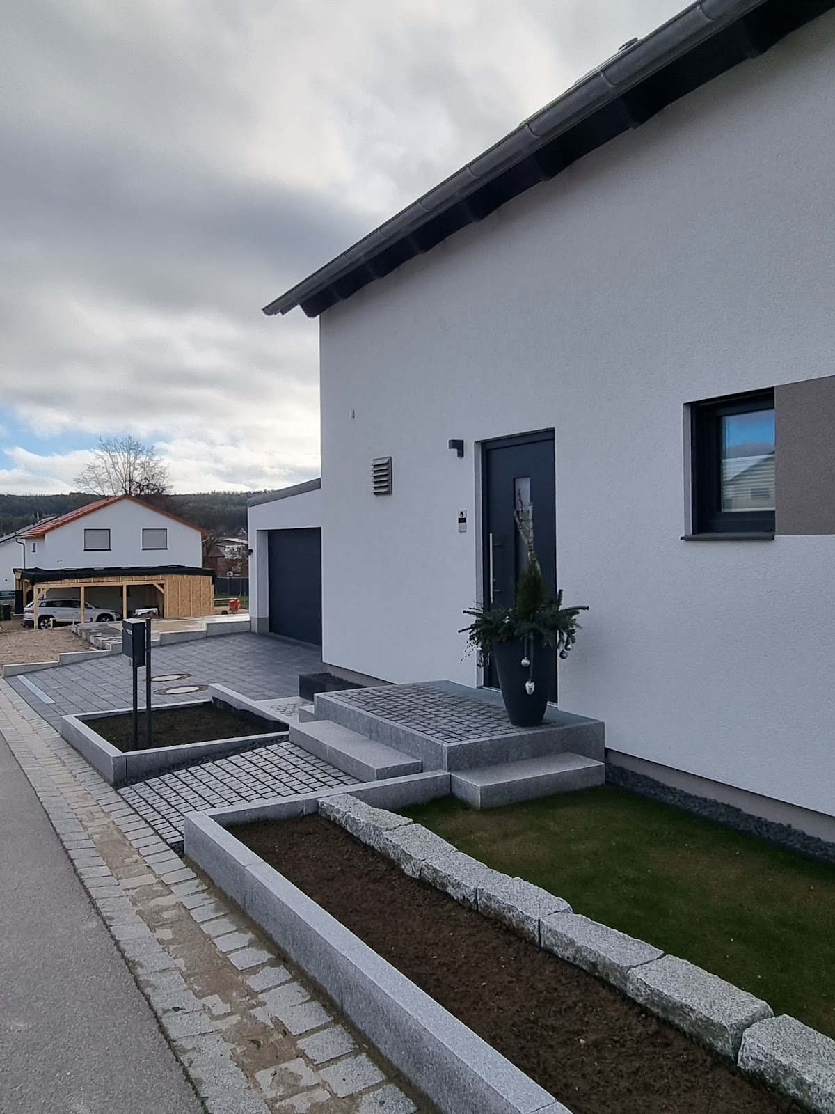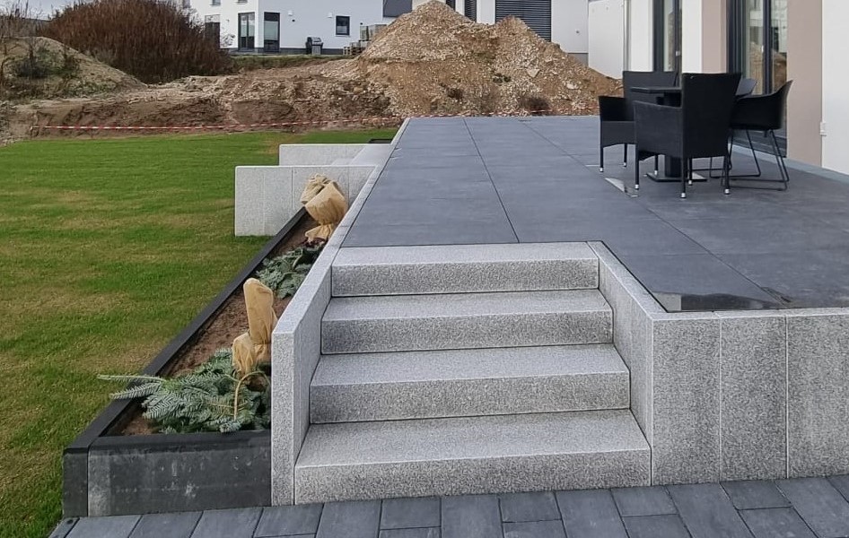 Saliu haben wir über Freunde empfohlen bekommen. Gute Entscheidung! Sie haben sehr ordentliche und zuverlässige Arbeit geleistet. immer gute Erreichbarkeit und sehr freundlich! - Terrasse Fundament verdichtet (waren bereit Pfusch einer anderen Firma auszubessern), Feinsteinzeug Fliesen 80x80 cm sauber verleget und verfugt - Übergang zu Garten mit Kalkstein geschmackvoll angelegt - Doppel-Stabmatten-Zaun anthrazit und Sichtschutzzaun (WPC, Alupfosten) seitlich zu Nachbarn ordentlich installiert, inkl. Rabatten - Bewässerungssystem von Hunter und Rainbird installiert - Rollrasen verlegt (ist gut angegangen) - Pflastersteine (KANN Muschelkalk) vor dem Haus im „wilden Verband“ schön verlegt Können wir uneingeschränkt weiterempfehlen!