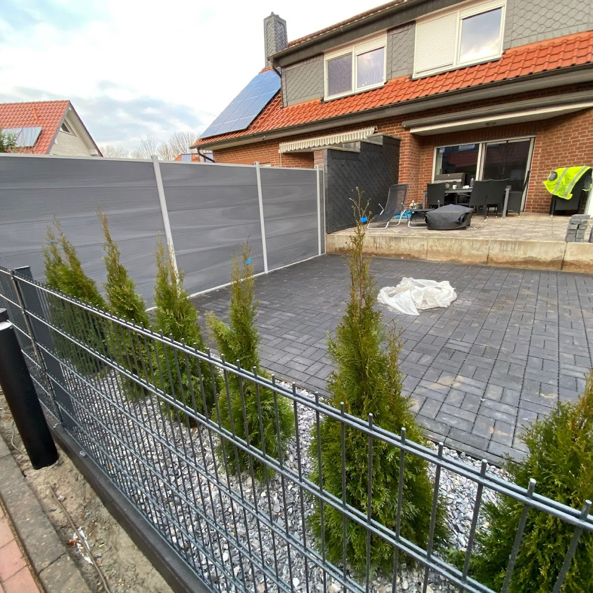 Der Kontakt kam sofort zustande.(und das in der heutigen Zeit !!) Es wurden 16 Lebensbäume gepflanzt. An der Stelle standen vorher 12 Tannen. Die Lebensbäume mussten zwischen die noch vorhandenen Stuken gepflanzt werden. Wurzelwerk erschwerte das ganze. Außerdem wurden noch die Hecken geschnitten, mit Formschnitt !! Dies alles in einem Tag. Es wurde alles zu vollster Zufriedenheit erledigt . Ein großes Lob und auf ein Wiedersehen in 2022.