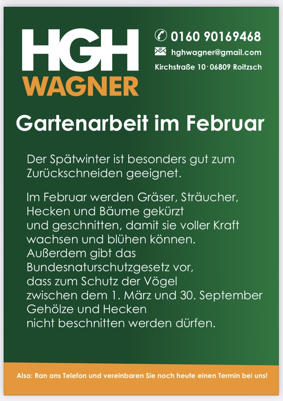 Das Team von Herrn Wagner hat super Arbeit beim Rückschnitt meiner Hecken und Bäume geleistet. Es wurde dabei sauber und ordentlich gearbeitet. Das Preis/Leistungsverhältnis war noch akzeptabel, im Gegensatz zu vielen anderen Dienstleistern. Werde wohl wieder mit HGH Wagner zusammenarbeiten.
