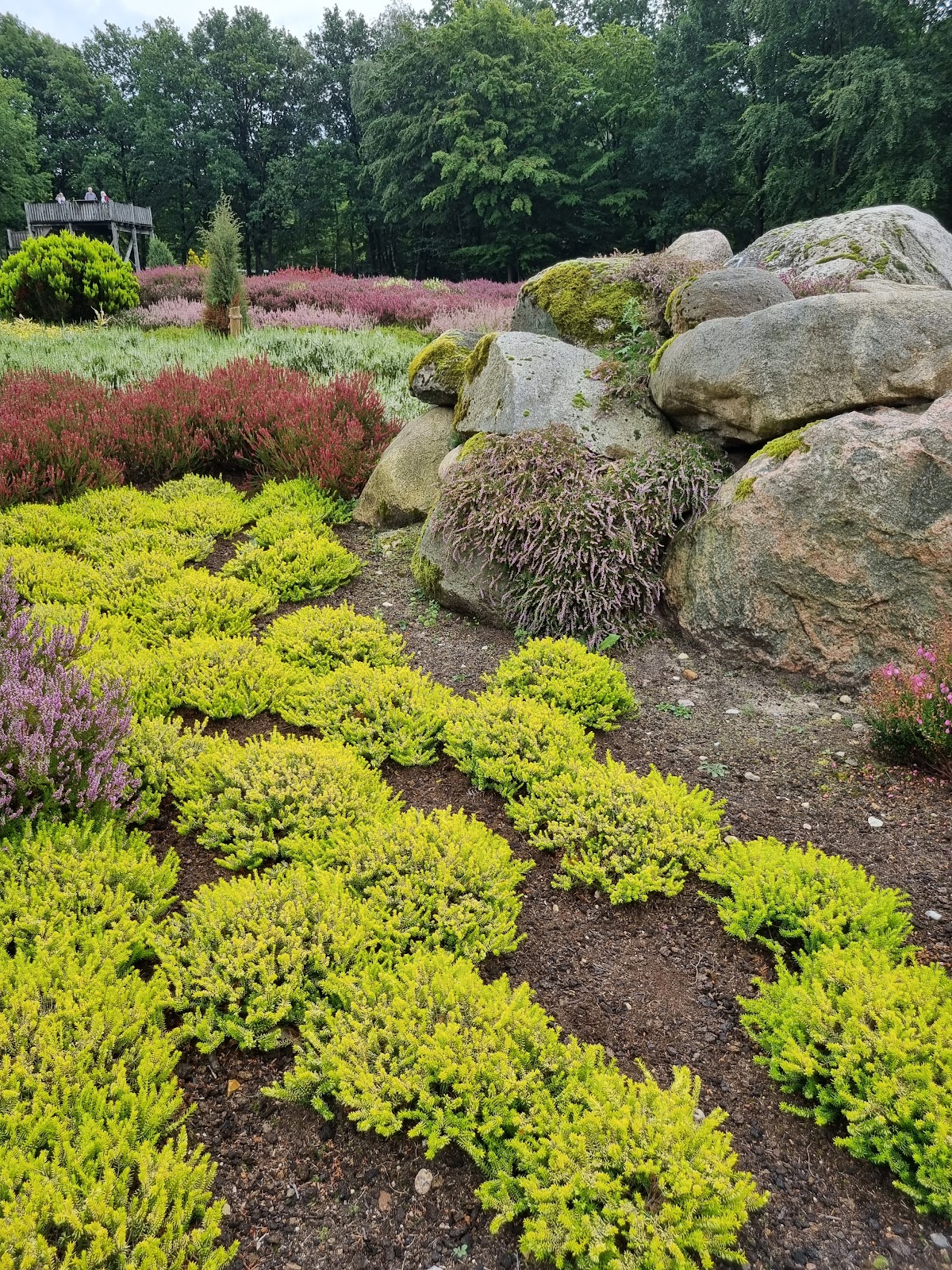 Eine wunderschöne und ganz akribisch und liebevoll gepflegte Anpflanzung von 200 verschiedenen Heidesorten. Es gibt einen kleinen Holzaussichsturm, damit man die schöne Anpflanzung von oben betrachten kann. Und es gibt einen Parkplatz. Auf jeden Fall sehenswert!