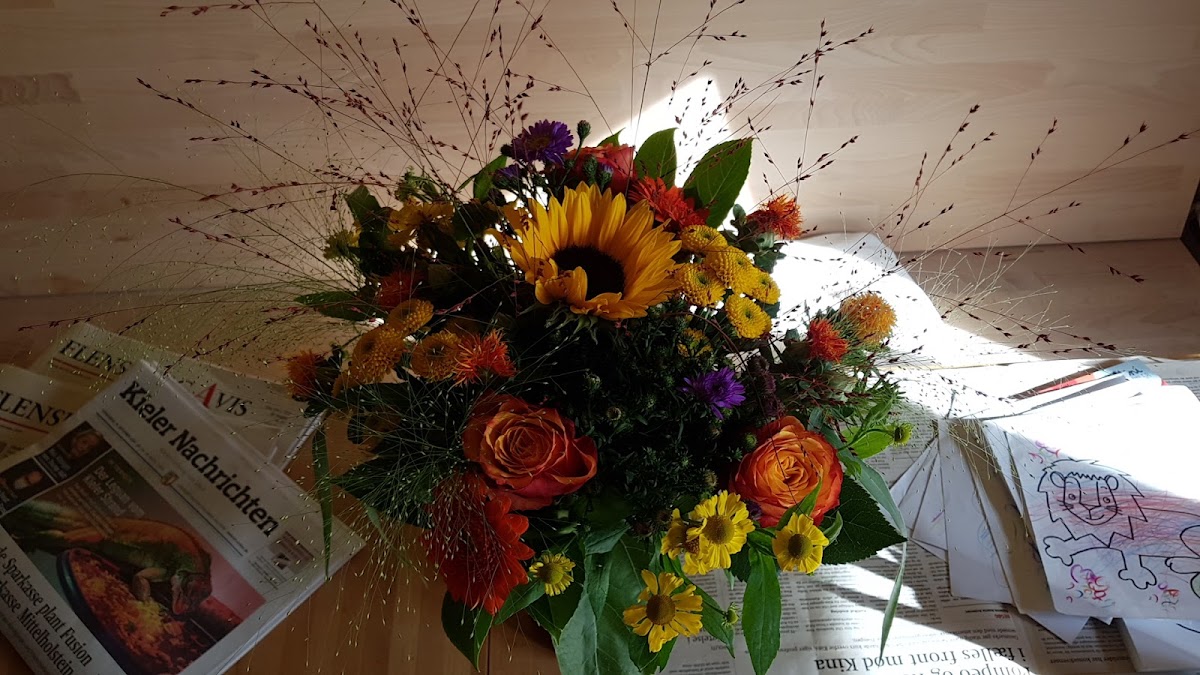 Unheimlich nette Mitarbeiterinnen, die einem alle Wünsche erfüllen. Ich wollte außerhalb der Saison Gladiolen und sie haben es möglich gemacht! Für meinen Brautstrauß hatte ich keine konkreten Vorstellungen und nur ein paar vage Beispielbilder. Ich habe mich also überraschen lassen und sie haben meinen Geschmack perfekt getroffen. Ein passender Anzuganstecker war selbstverständlich mit dabei. Eine Herzensempfehlung!