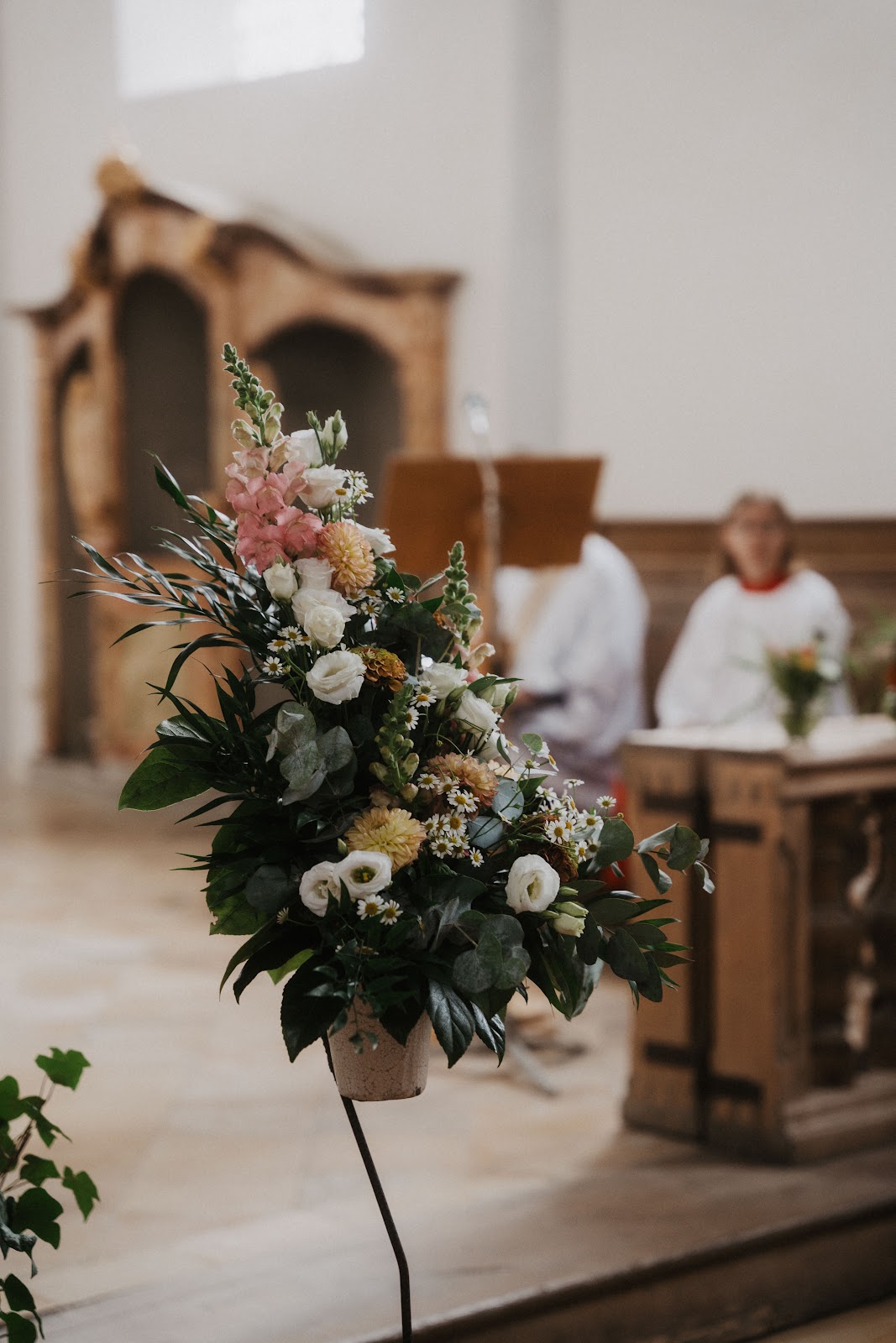 Wir haben im August geheiratet und die Gärtnerei Pröbstl kümmerte sich um alle Blumen für die Kirche und den Empfang. Wir waren mit allen Blumen sehr zufrieden – sie waren wunderschön und liebevoll präsentiert. Sie stellten meinen Brautstrauß, die gesamte Dekoration für die Kirche, Blumenkränze für die Blumenmädchen, einen Ansteckknopf für den Bräutigam, ein Blumenarmband für die Mütter, Dekoration für das Hochzeitsauto, eine Mischung aus Tischblumen für den Empfang und Vasen zur Miete zur Verfügung. Sie gaben mir während des Planungsprozesses hilfreiche Anleitung und Inspiration. Ich kann sie für Hochzeitsblumen sehr empfehlen.
