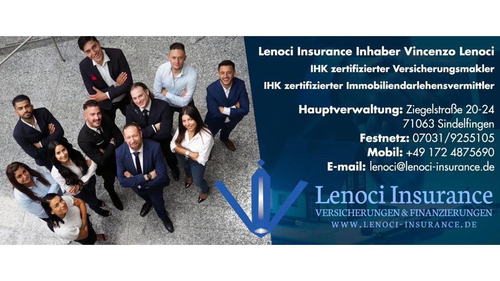 Ich kann Lenoci Insurance aus eigener Erfahrung wärmstens weiterempfehlen. Herr Vincenzo Lenoci ist ein sehr freundlicher, hilfsbereiter und kompetenter Mensch, der sich sofort um die Fragen und Wünsche seiner Kunden kümmert. Mit besten Grüßen und weiterhin viel Erfolg.