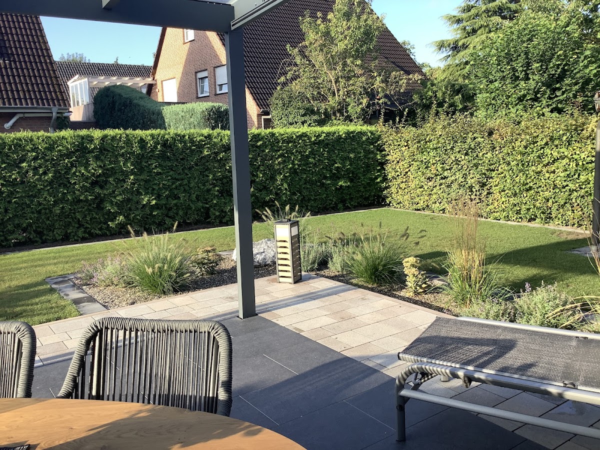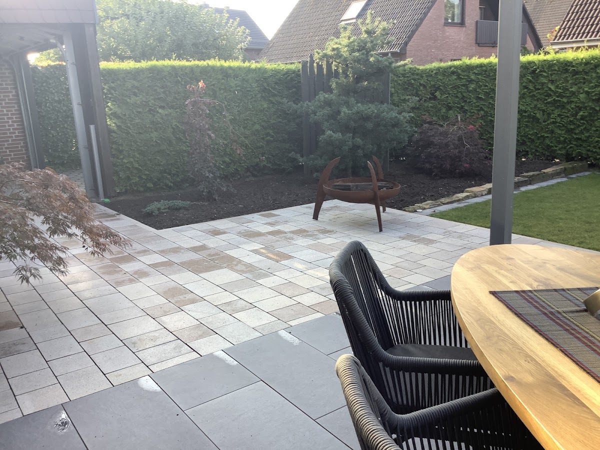 Danke für Ihre zuverlässige Arbeit. Von Beratung, Ausführung, spontane Mehrarbeit bis zur Ausführung alles richtig, richtig gut. Es war angenehm solche Mitarbeiter tagelang im Garten zu haben. Sie haben mir als Kundin alle Schritte erklärt, handwerklich gut gearbeitet und hatten untereinander einen netten Ton (auch den Azubis gegenüber). Und nach fünf Tagen hatte wir eine saubere Terrasse und nichts (trotz größerer Geräte) war beschädigt. Gute Arbeit!!