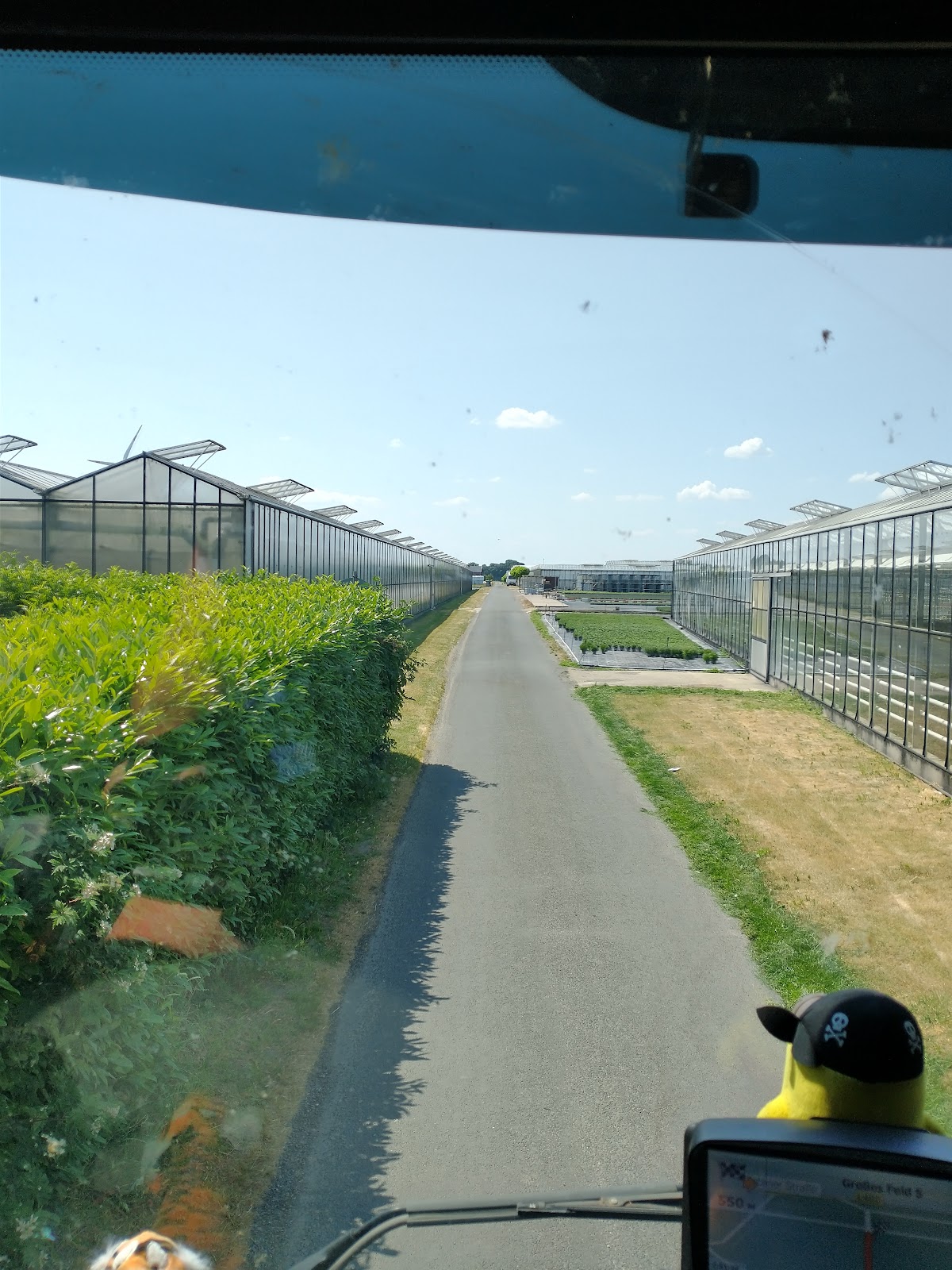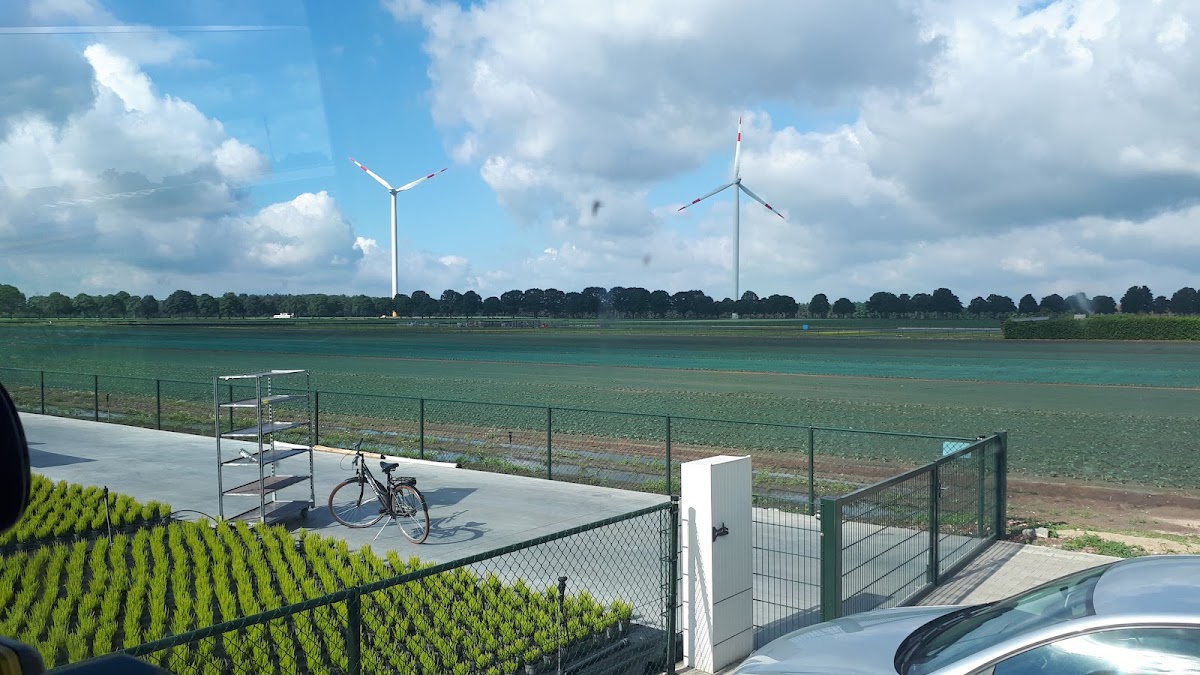 Plantagen mit Blumen, das Einchecken ist etwas schwierig. Es gibt keine Parkplätze an sich – aber man kann sich auf eine Pause auf dem Exerzierplatz einigen. Dort arbeiten viele Polen – normale Leute. Kaffeemaschine und sogar kaltes Mineralwasser - dafür gibt es einen Sonderpreis.
