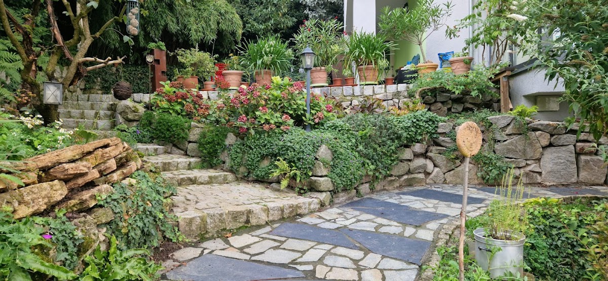 Herr Schilling ist seit einigen Jahren unser "Hausgärtner". Er pflegt unseren wunderschönen Garten, der am Hang liegt. Unser Zugang zum Garten ist dadurch nicht einfach. Wir sind sehr froh, dass das Material, welches benötigt wird, und sei es noch so schwer, von seiner großartigen Mannschaft „an Ort und Stelle“ gebracht wird. Er hat super Ideen und wir schätzen sein Fachwissen und seine Kompetenzen. Bei uns wurden etliche Gartenbauprojekte durchgeführt. Er hat neue große Beete angelegt, Sträucher gepflanzt und eine große Steintreppe gebaut, neue Trockenmauersteinmauern gebaut und auch Reparaturen von Mauern gemacht, nur um einige Beispiele zu nennen. Hervorstechen tut jedoch seine letzte große Arbeit, das Gestalten von zwei Steinterrassen und einem langen Weg. Herr Schilling hat meine Ideen wunderbar umgesetzt und seine Ergänzungen waren sehr kostbar. Seine Vorschläge für die Gestaltung und seine Fähigkeiten bei der Umsetzung, etwa die Verfugung mit Pflastermörtel, der hochwasserdurchlässig ist, haben sich als super Idee erwiesen. Alles sieht toll aus. Er hat ein kleines Paradies geschaffen. Danke