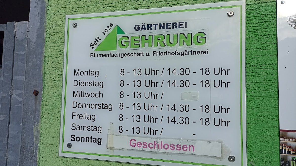 Gärtnerei Gehrung GmbH ist ein hervorragender Anbieter für alle, die nach hochwertigen Pflanzen und Gartenbedarf suchen. Die Auswahl an Produkten ist beeindruckend und die Qualität ist unübertroffen. Die Mitarbeiter sind sehr kompetent und hilfsbereit und bieten eine hervorragende Beratung. Ich bin begeistert von der Fachkompetenz und der Leidenschaft, mit der die Gärtnerei ihre Arbeit ausführt. Ich habe meinen Garten dank ihnen in eine grüne Oase verwandelt und kann Gärtnerei Gehrung GmbH wärmstens empfehlen.