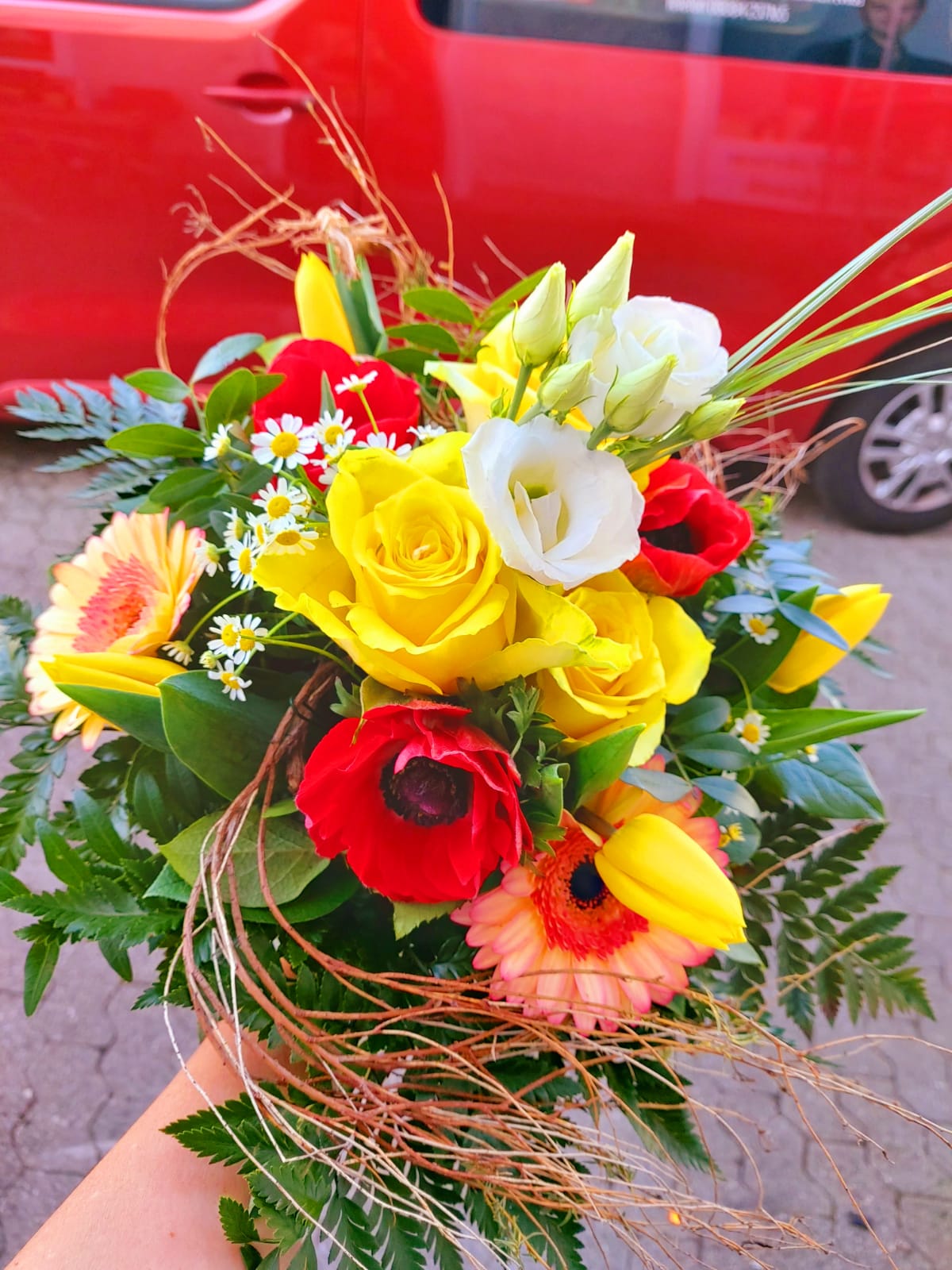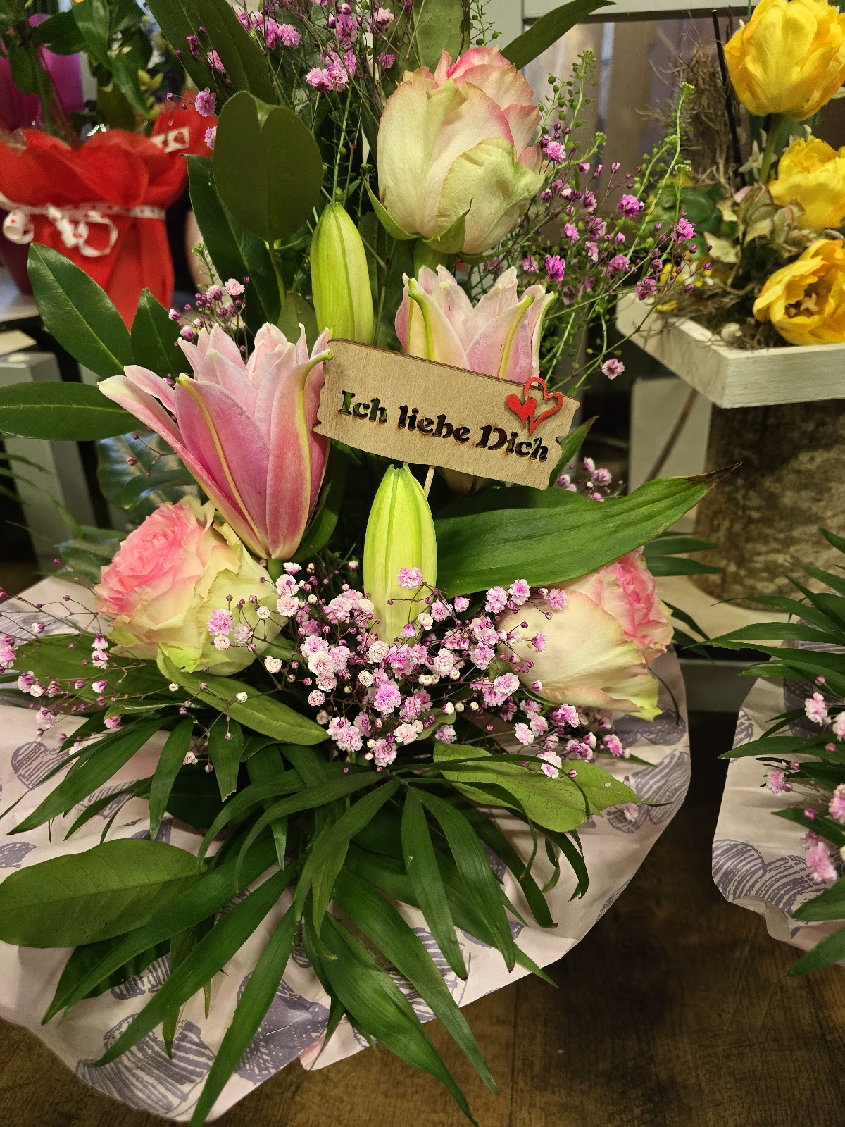 Am 3. Februar vormittags kurz angerufen und einen bunten Strauß bestellt. 3 Stunden später einen wunderschönen Blumenstrauß abgeholt. Heute, 17. Februar, steht der noch immer in unserem Haus und sieht toll aus. Hervorragende Qualität!
