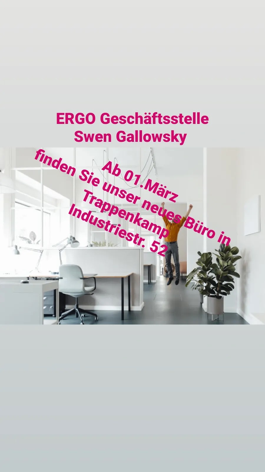 Sehr hilfsbereit, freundlich, Ratgeber. Ich würde die Ergo immer weiter empfehlen und Ich bin sehr froh das das Büro von Swen Gallowsky in meiner Nähe ist.