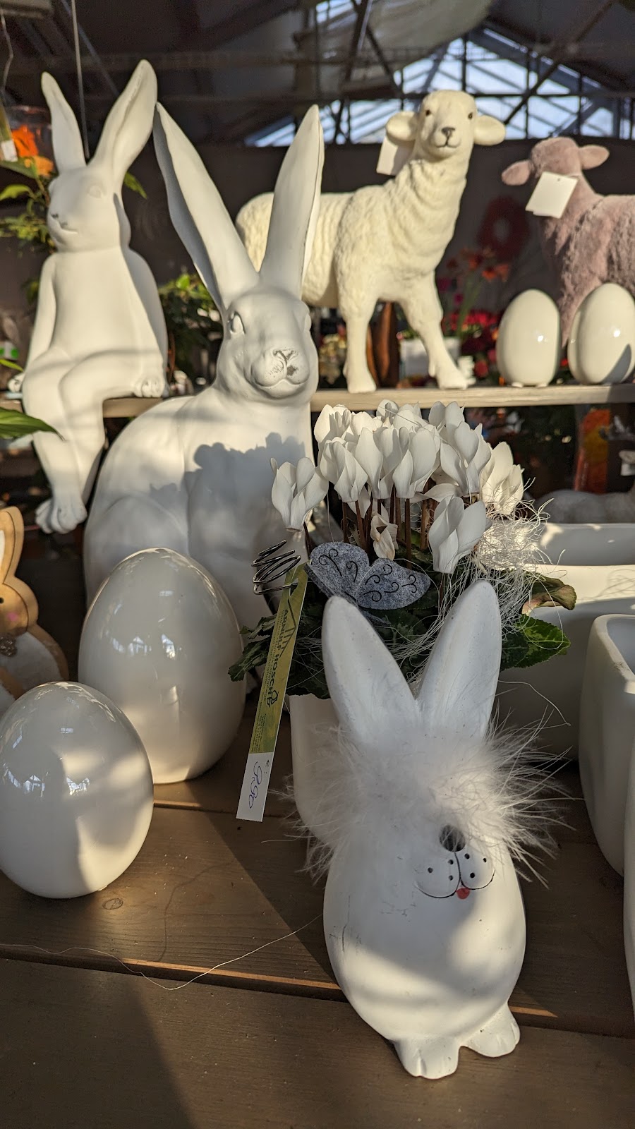 Witzige und außergewöhnliche Osterdeko gefunden. Sehr viele Pflanzen werden Vorort produziert und die Qualität ist super. Zu den gestreiften Hasen hab ich Narzissen mit genommen. Margeriten gibt es auch schon in tollen Farben. Da komme ich in 3 Wochen nochmal vorbei und kaufe welche für die Terrasse.