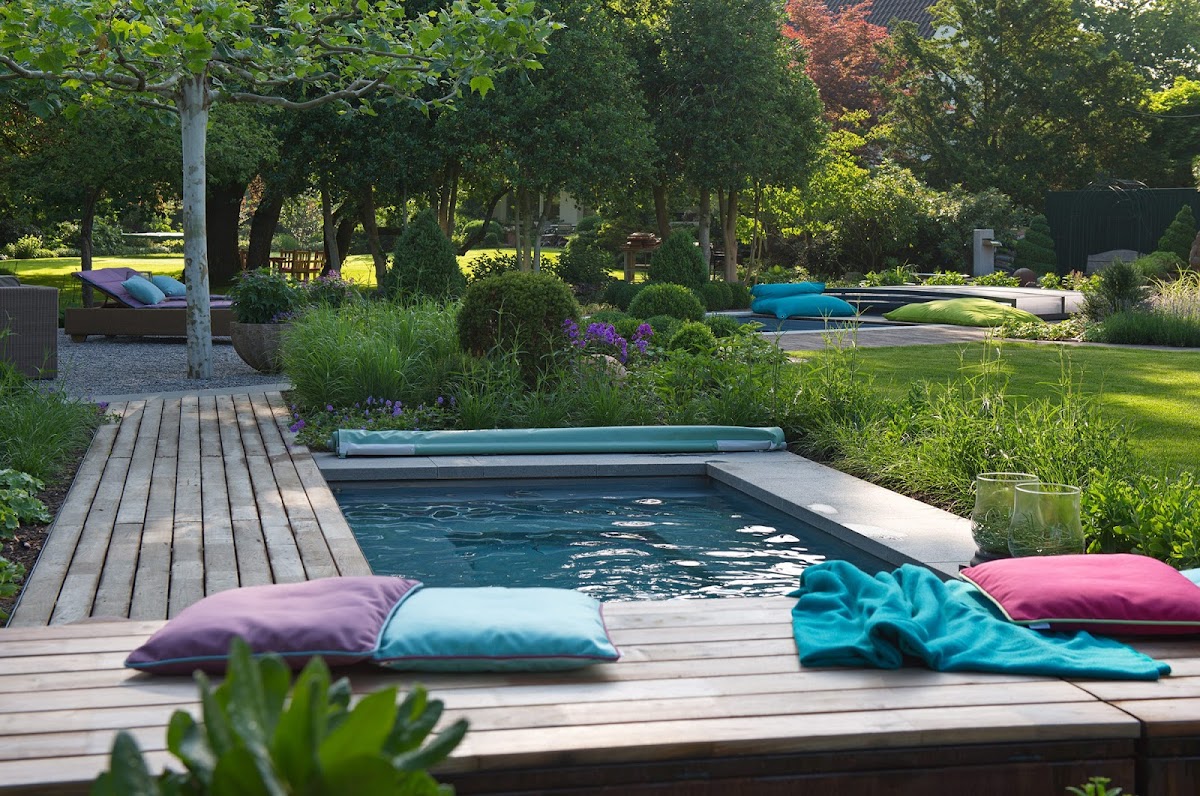 Wer hier über das Areal läuft, der wird Ideen und Beispiele für Gestaltungsmöglichkeiten eines Gartens finden. Es ist natürlich auch eine Frage der finanziellen Mittel, die man einsetzen kann oder will.