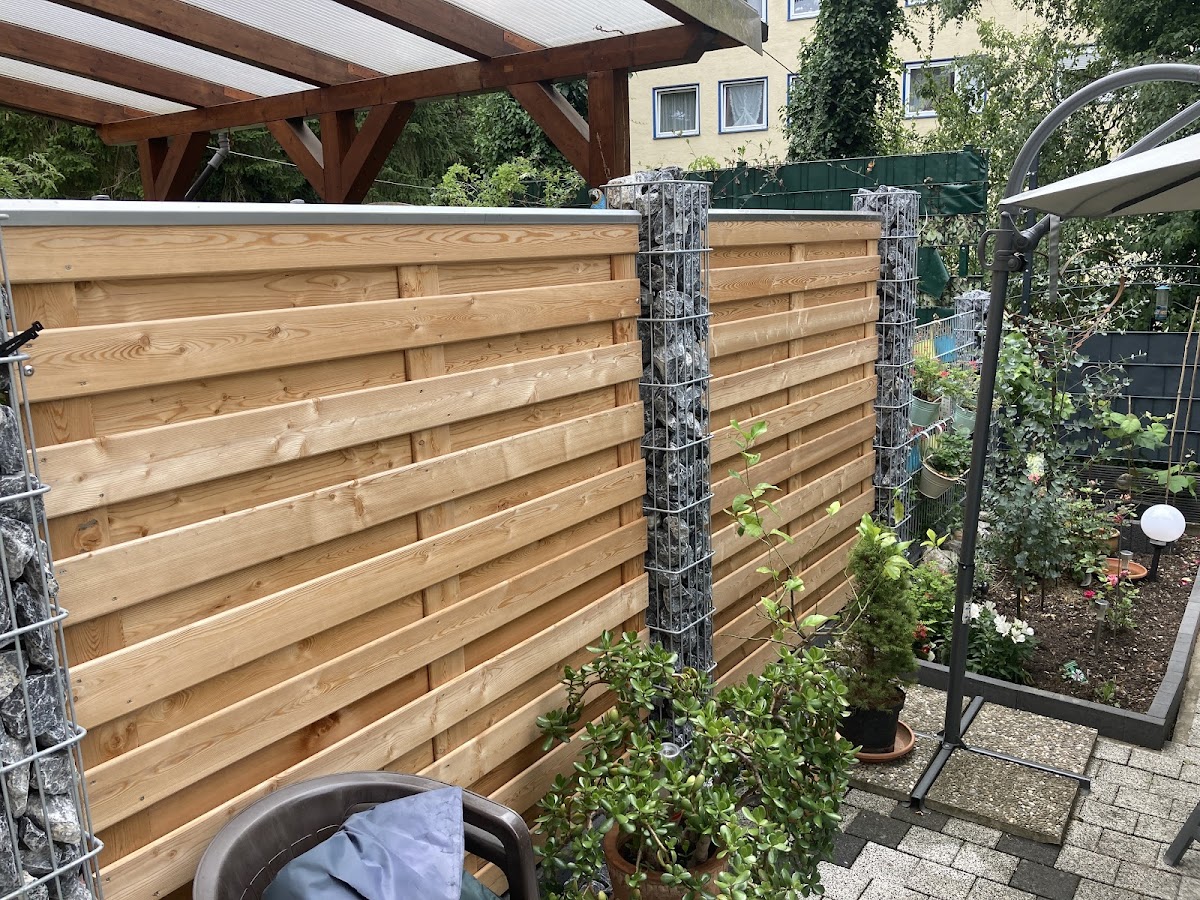 Nowak Galabau hat unseren Zaun umgesetzt mit Gabionen Pfosten und Lärchenzaunelementen. Gute, ordentliche und schnelle Arbeit! Vielen Dank