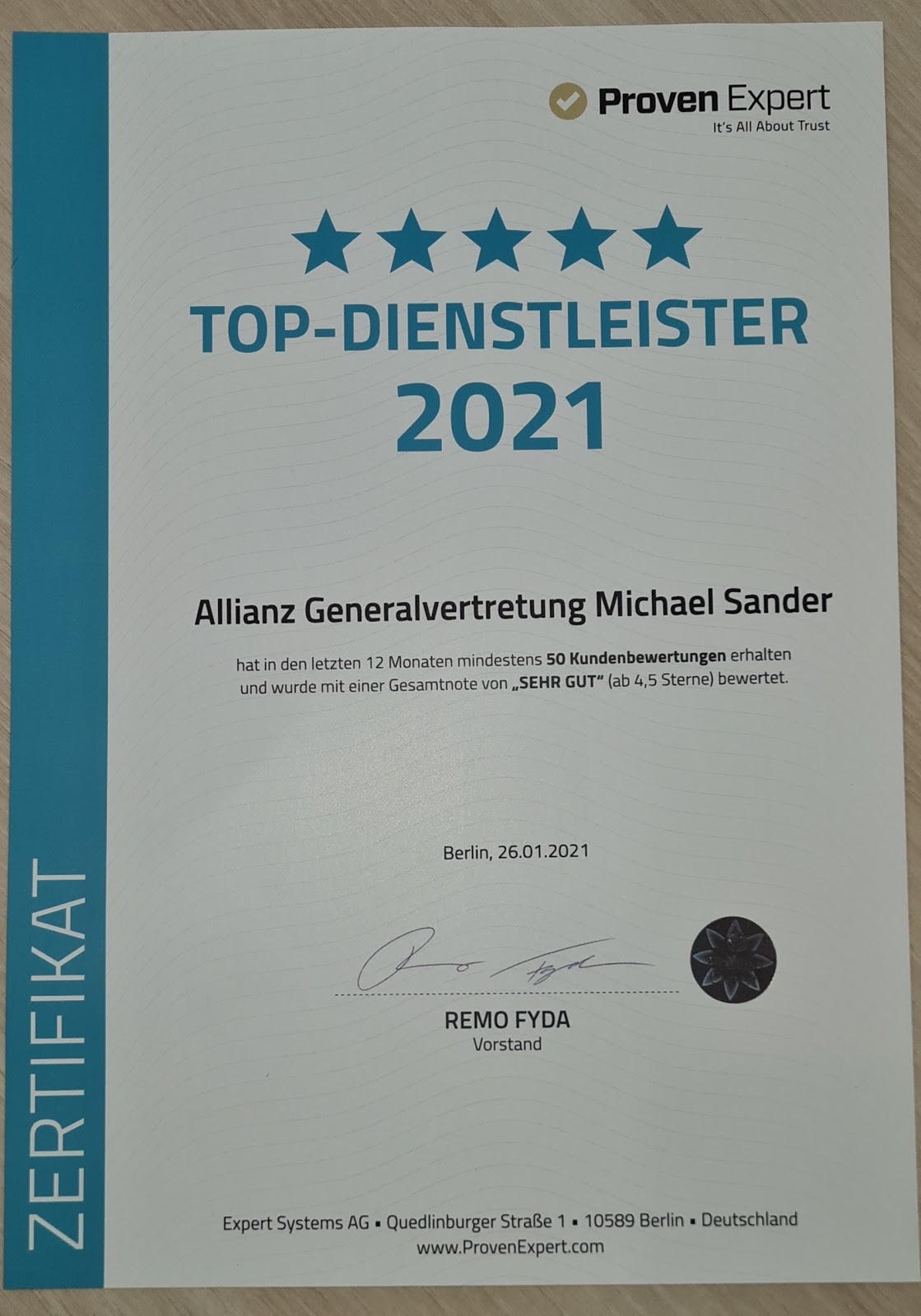 Bei Herr Sanders fühlt man sich sicher aufgehoben und gut beraten. Zeit für individuelle Lösungen wird gegeben und bei Schäden schnell reagiert.
