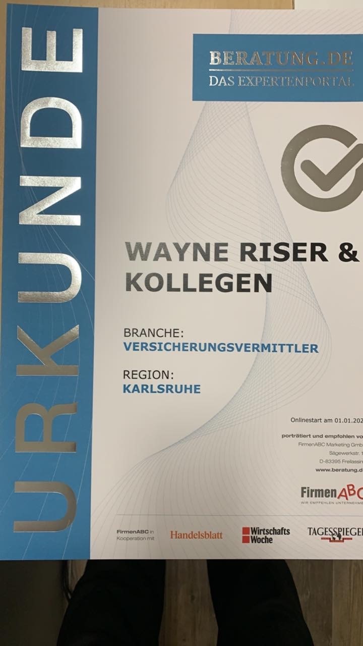 Unsere gesamte Familie wird seit 29 Jahren von Herr Riser betreut und kompetent beraten. Vielen Dank dass Sie immer so viel Zeit und Mühe investiert haben und wir hoffen das Sie uns noch viele weitere Jahre mit Rat und Tat begleiten werden.