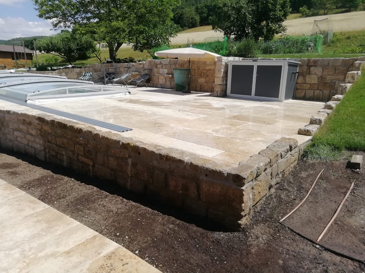 Wir hatten uns nach dem Bau unseres Einfamilienhauses dafür entschieden, die Firma Stefan Schoder - Garten- und Landschaftsbau für die Gestaltung unserer Außenanlage zu beauftragen. Die Kontaktaufnahme verlief einfach und unkompliziert. Schnell erfolgte eine Vorortbegehung, bei dieser eigene Ideen und Wünsche, Verbesserungsvorschläge und Umsetzungen besprochen worden sind. Wir hatten uns auf zwei Ebenen verständigt: eine ordentliche Gras-/Spielfläche sowie die Gestaltung um das komplette Haus herum mit Wegen, Park- und Grünflächen, Grundstücksabschluss (Einfriedung), Eingangsportal sowie Terrasse. Die Trennung dieser Ebenen wurde durch die Errichtung einer Bruchsteinmauer erzeugt. Die Arbeiten sind gewissenhaft und ordentlich durchgeführt worden. Während der gesamten Zeit konnten Rücksprache oder Anpassungswünsche erfolgen. Die Mitarbeiter waren stets freundlich, umsichtig und zuvorkommend, haben ihren Arbeitsplatz auch stets sauber verlassen. Und natürlich war uns bewusst, dass dieses Projekt nicht innerhalb kürzester Zeit umgesetzt werden konnte. Dennoch wurde darauf geachtet, dass man jederzeit einen ordentlichen Zugang zum Haus oder auch Parkmöglichkeiten hatte. Wir danken allen Mitarbeitern der Firma für die tolle Umsetzung unserer Wünsche und der schönen Gestaltung unserer Außenanlage. Damit ist ein weiterer großer Abschnitt für unser Projekt Realität geworden. Vielen Dank dafür!