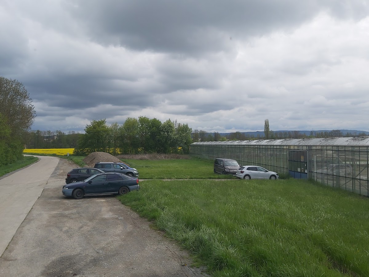 Draußen gibt es einen kleinen Parkplatz, schmale Einfahrt, guter Service