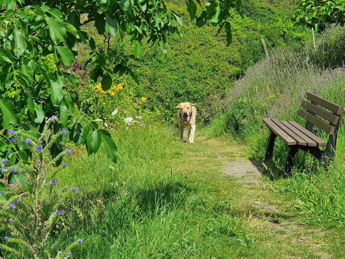 Ich bin hier auf einer Trekkingtour über den Moselsteig vorbeigekommen. Ein sehr schöner gepflegter Garten mit schöner Aussicht auf die Mosel.