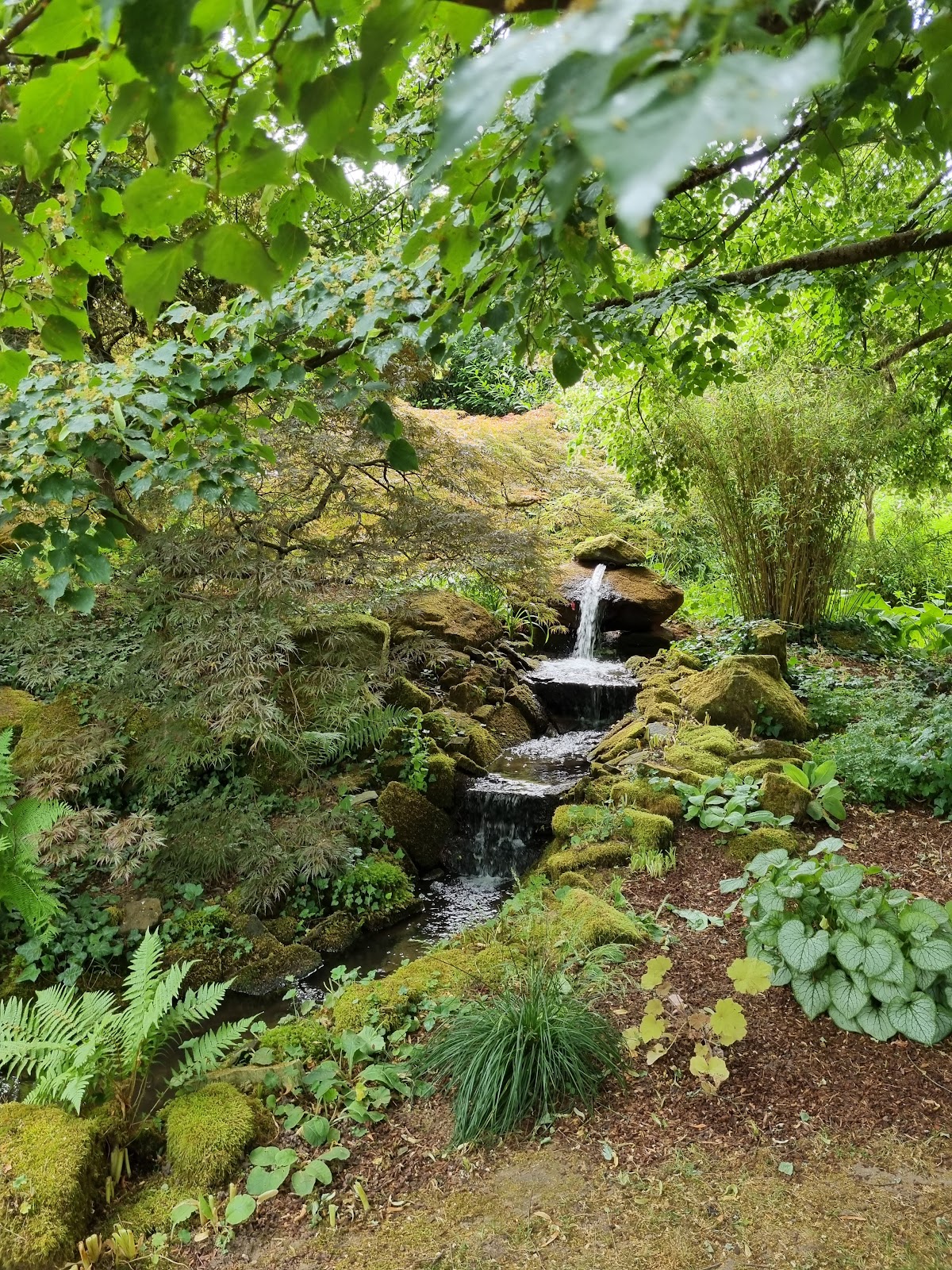 Schätze die Größe auf 2 ha. Sehr gepflegt, man beschäftigt 3 Gärtner. Wunderschöne Ecken, schöne Aussicht auf abwechslungsreichen Gartengestaltung. Sorry, aber die Engländer können es besser.